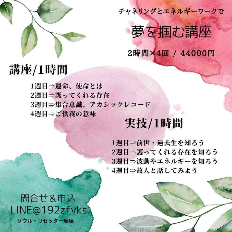 基本 皆さんチャネリング能力はお持ちなので、それを引き出すことが瑠璃の役目です。